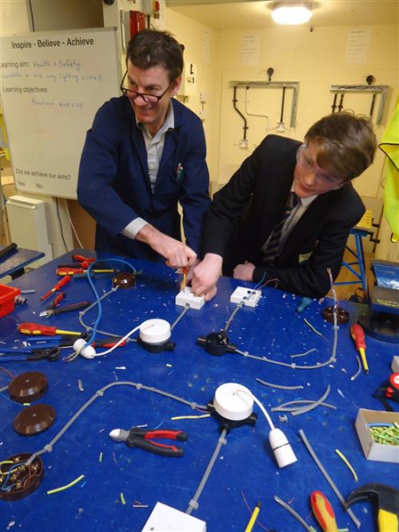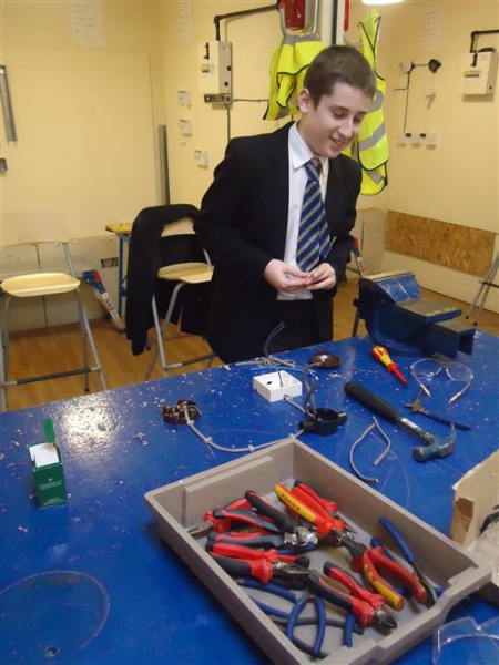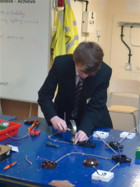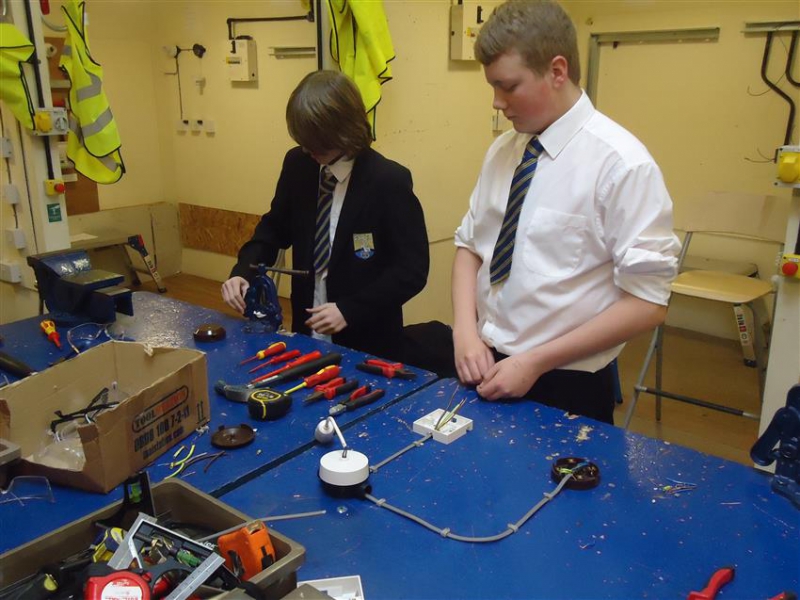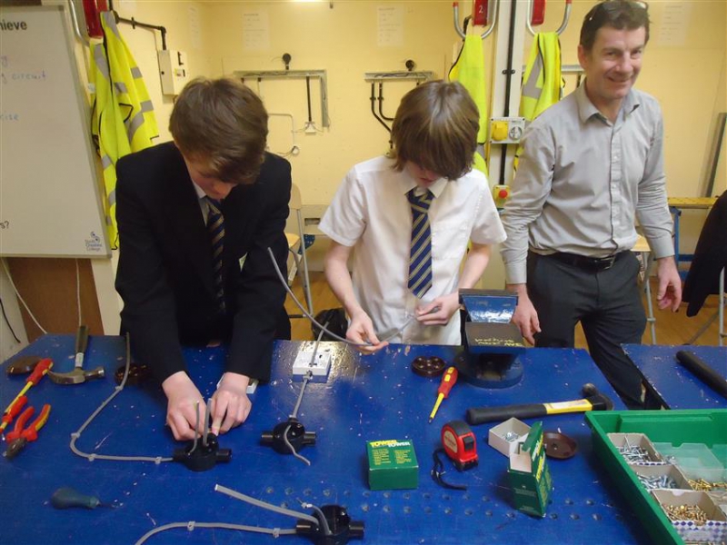 Brickies built walls that seemed to stand straight and tall, one pupil is still looking for a spare bubble for his spirit level, and no doubt some entrepreneurial student is probably quoting for someone’s extension as you read this. Plumbers produced soldered joints and complex bends in pipes and probably considered how much their call out fee should be. The Hair and Beauty group seemed content to be pampered by students at South Cheshire; nails were manicured, hands massaged and even hair washed and blow dried. Future electricians did not have any shocking experiences and produced a functional lighting circuit; they were given instructions not to practice at home. Both sports courses ended up on the climbing wall, we found spider girl, spider boy, a few wall creepers and even one pupil who was so taken with the view from the summit she stayed there for 15 minutes.
