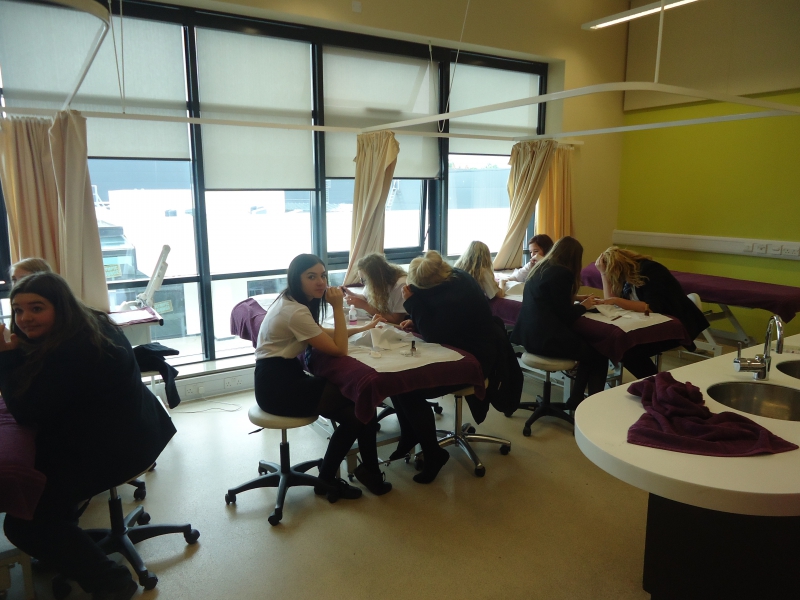 The A level biologists studied wood lice using choice chambers to see what conditions the arthropods preferred to exist in. The social media group set up social media accounts and seemed very much at home in the virtual world. Experience definitely showed. Future hair dressers enjoyed the facilities and hair was washed, conditioned and straightened again several of the pupils had obviously a great deal of experience in this area. Beauticians massaged hands, prepared and enamelled nails and nail extensions. Hopefully they will continue to practice these skills but not on a school day!
