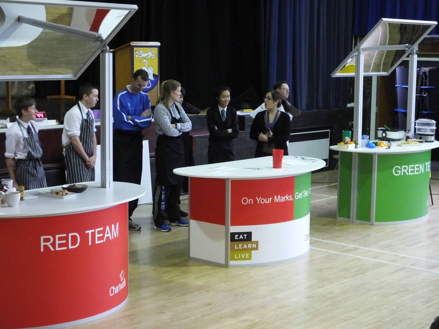 They only had 15 minutes to cook and present their meals. Ben Rodgers started the teams off and set the stopwatch ticking.