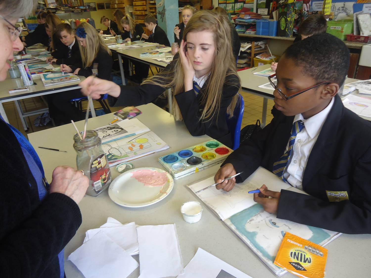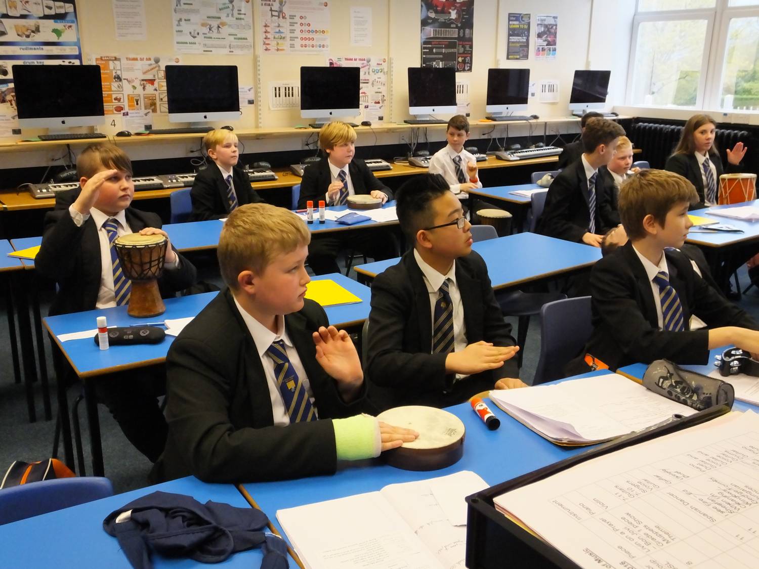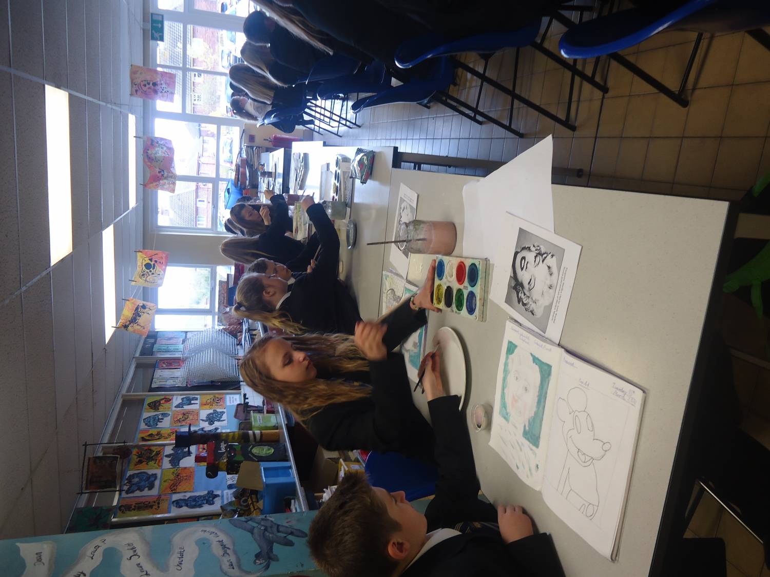In period 2 we had 7 Orange drumming with Mrs Trender; WWII related Art with Ms Kay – observed by Mrs Biddulph and Chair of Governors, Mrs Beeston; 8 Green Post Impressionist landscape painting with Miss Formstone and 8H baking pastry tarts with Mrs Tunstall.