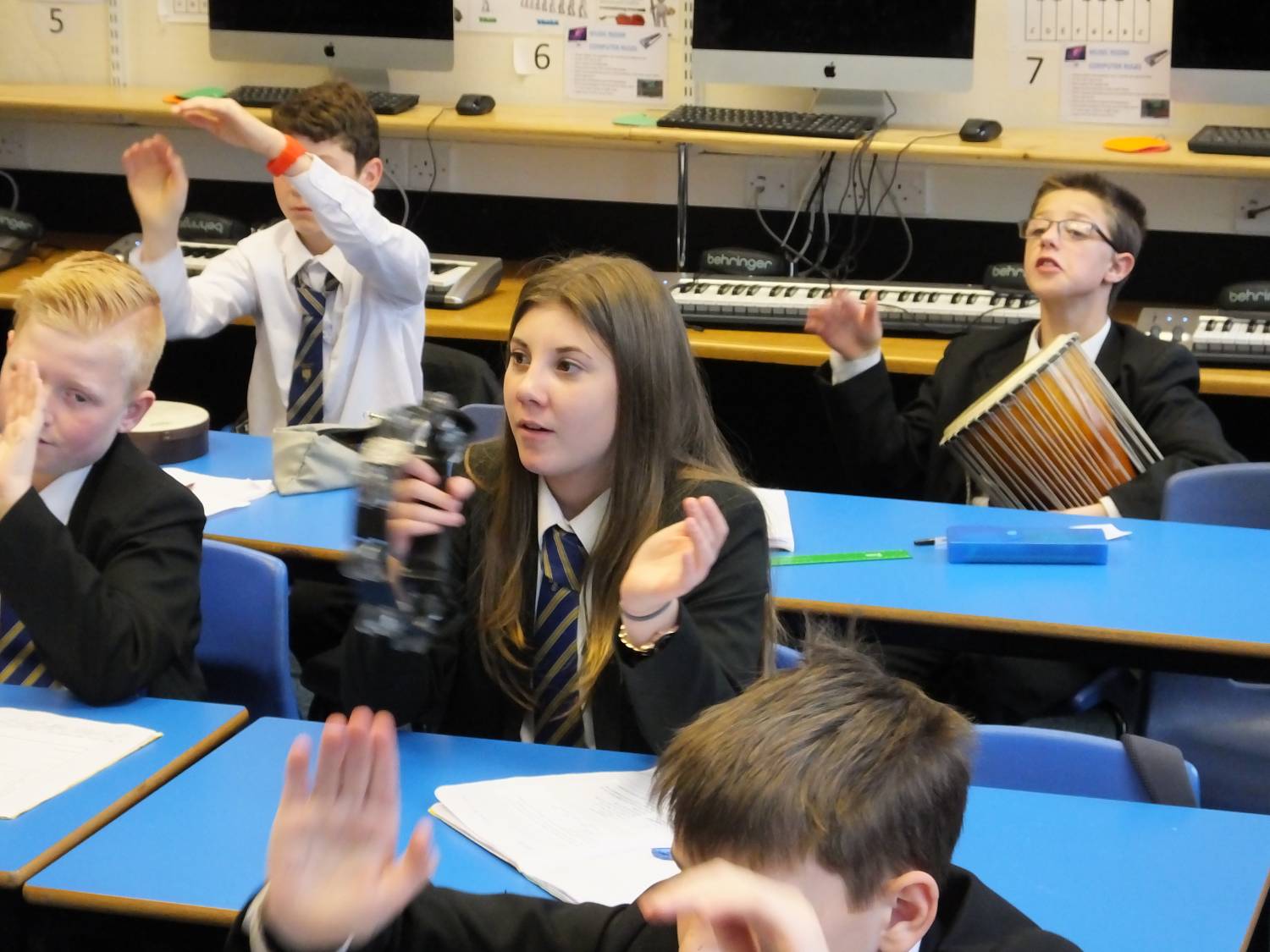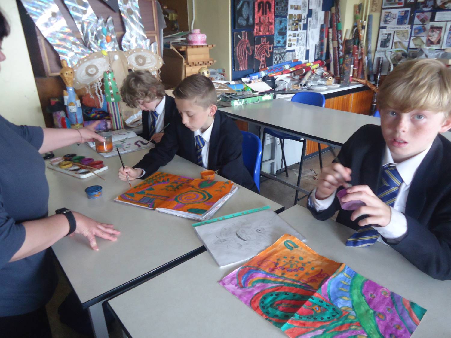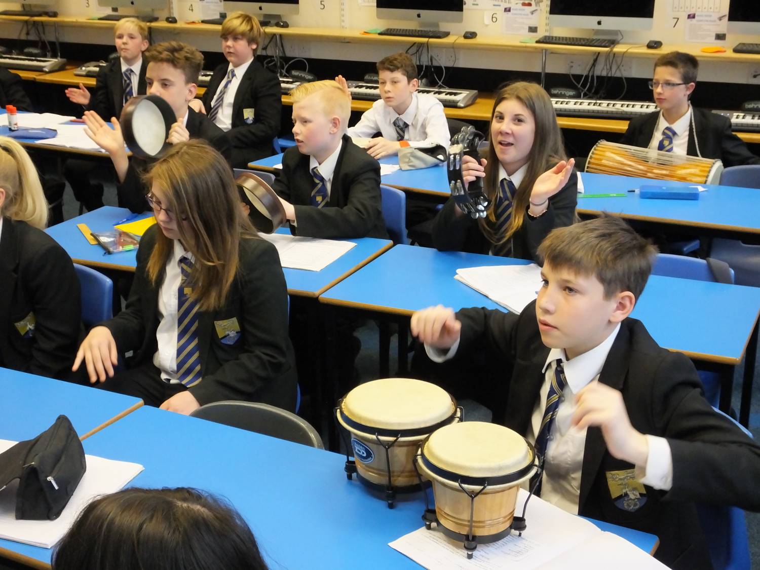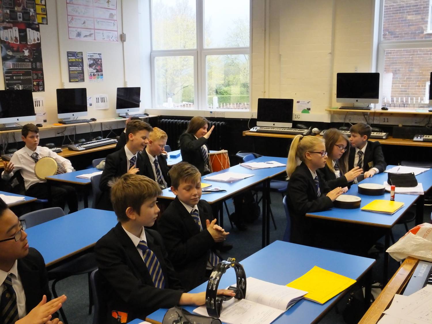 In period 2 we had 7 Orange drumming with Mrs Trender; WWII related Art with Ms Kay – observed by Mrs Biddulph and Chair of Governors, Mrs Beeston; 8 Green Post Impressionist landscape painting with Miss Formstone and 8H baking pastry tarts with Mrs Tunstall.