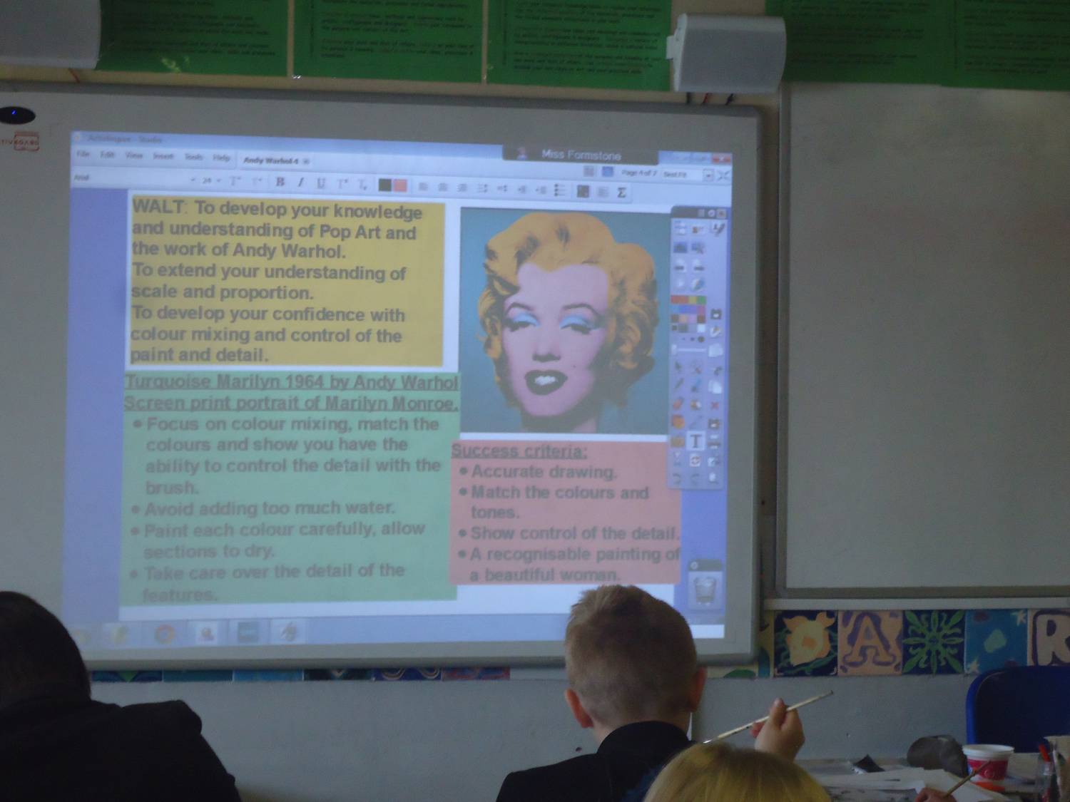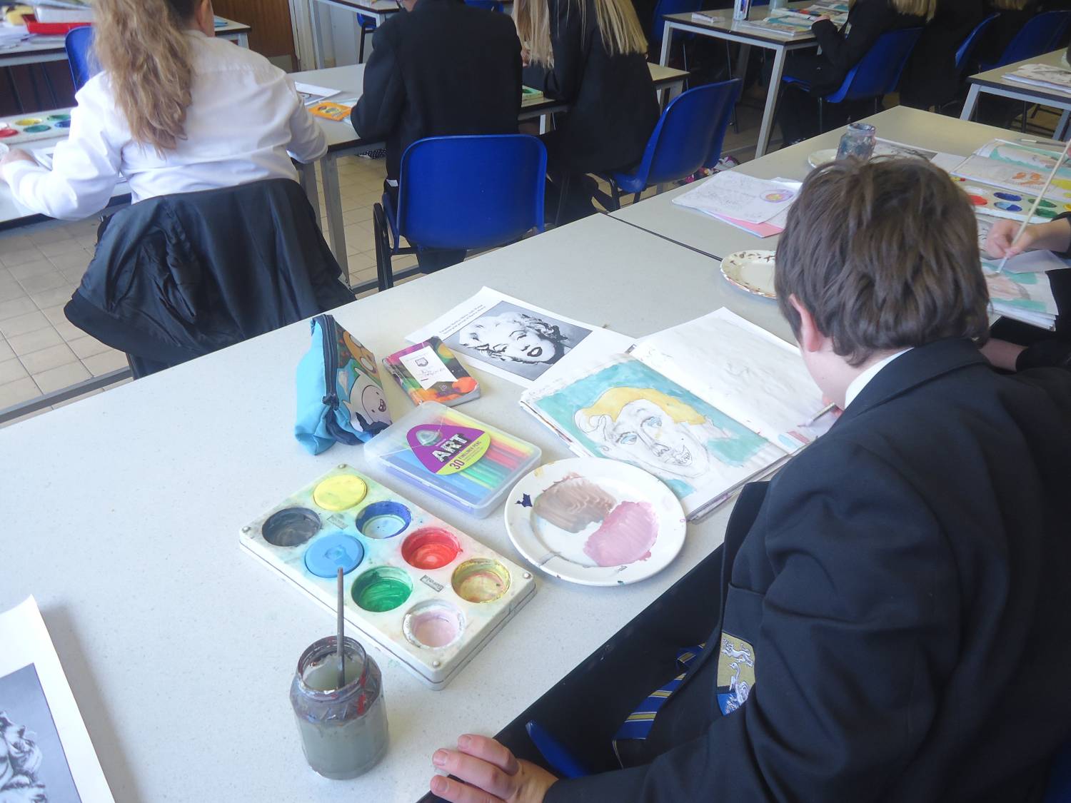 In period 1 we had Mehdi painting with Ms Kay in Art; 8 Purple creating cover versions of songs with Miss Miller in Music; Metalwork with Mr Potts; Pop Art paintings of Marilyn Monroe for 7 Red with Miss Formstone; Fakebook pages to study Macbeth in Miss Carter / Miss Hyland’s English lesson and a Problem Solving Relay for Y10 set 3 in Maths with