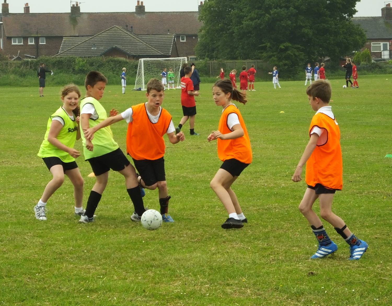 football-leaders-festival-inline-photoOne hundred and eighty pupils from 5 primary schools took part in the STB Junior Football festival on Wednesday June 8th – Ravensmead, Richard Heathcote, Springhead, Wood Lane and St Chads.