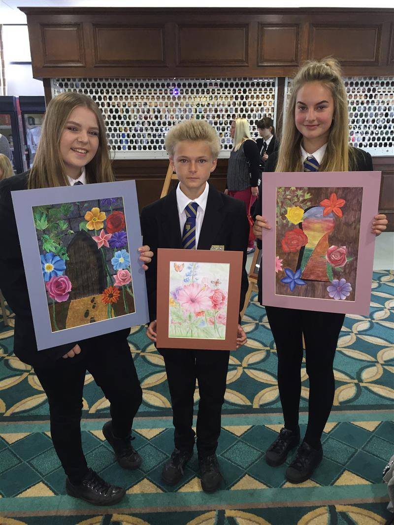 Rebecca Day, Maia Nistoreanu and George Eardley attended the prize-giving and exhibition at Keele Hall for the Britain in Bloom Painting Competition. They all achieved a ‘Highly Commended’ award for their paintings and drawings.