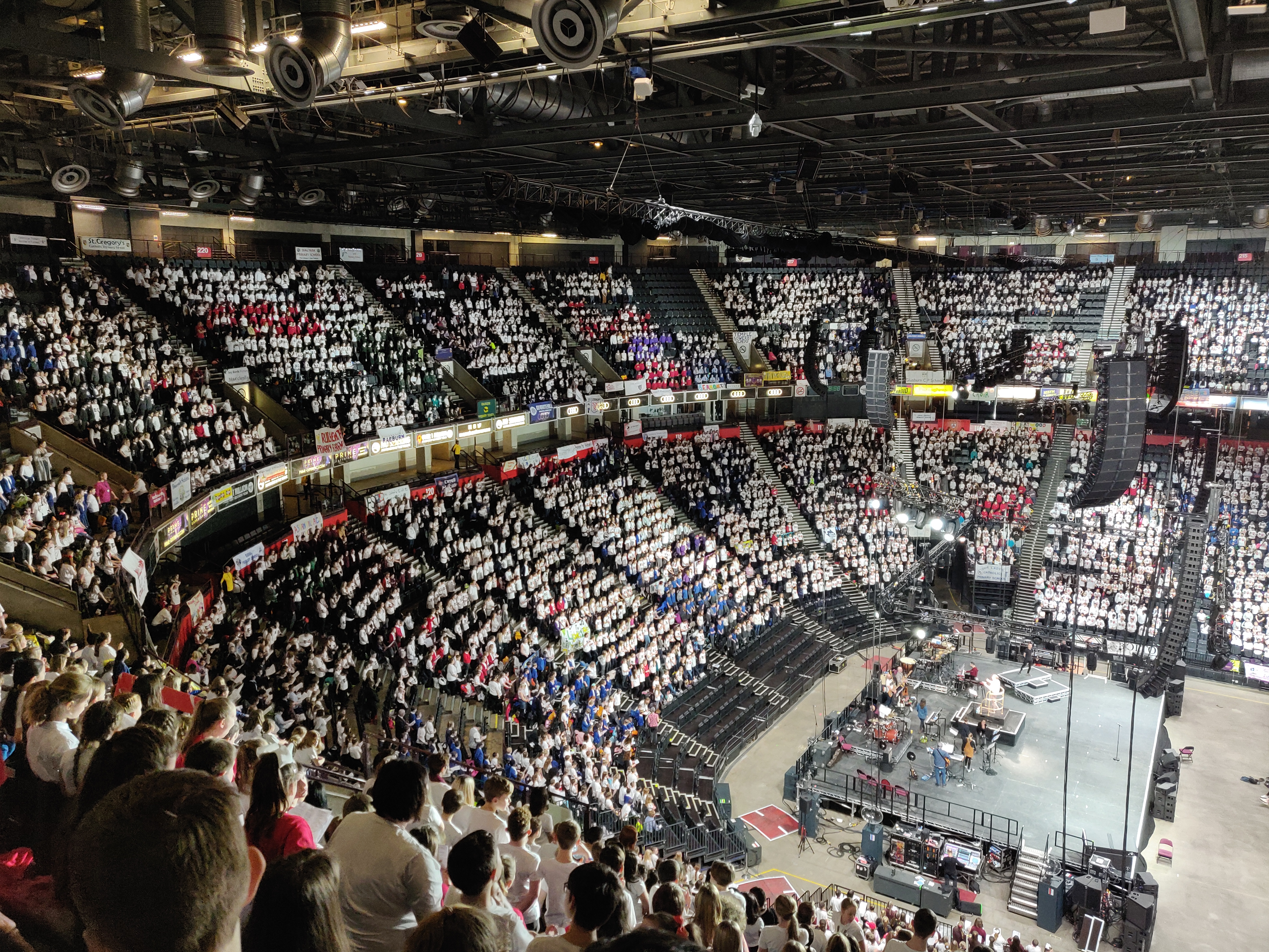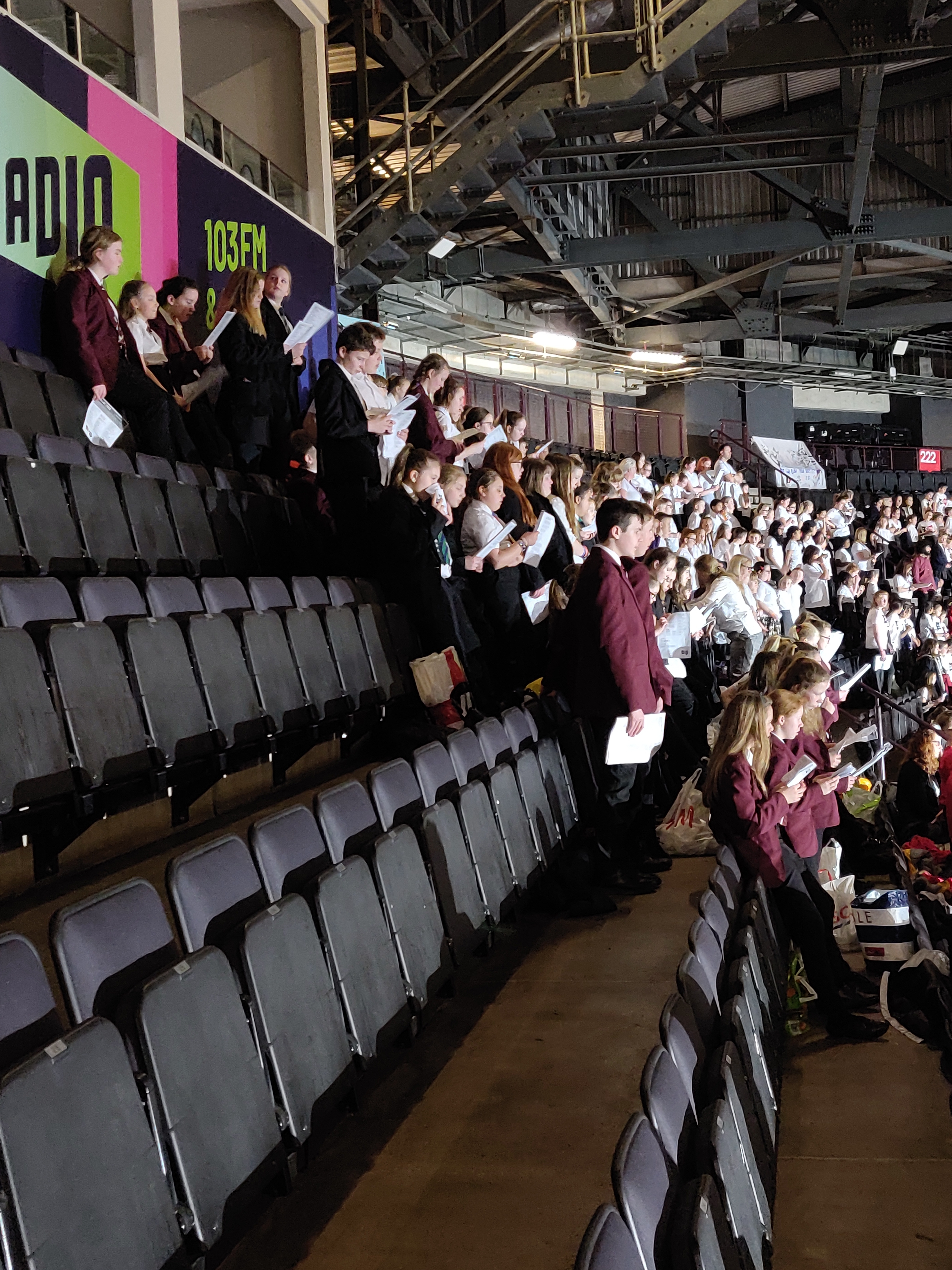 67 UET singers very excited and getting stuck into the rehearsal with the highly acclaimed conductor David Lawrence.