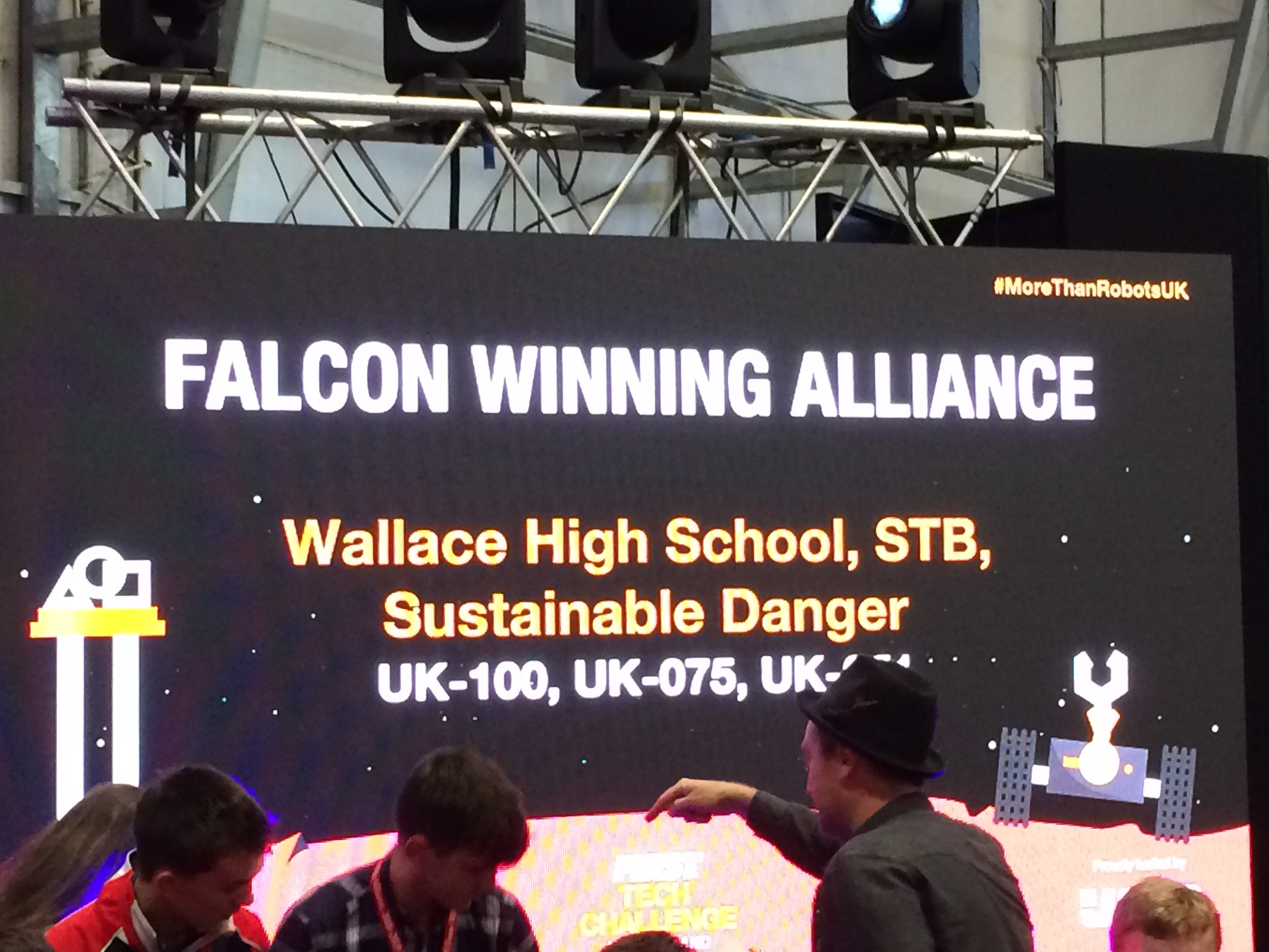 At the end of the elimination section Sir Thomas Boughey showed they had a robot which was scoring well and they formed an alliance with two other teams which saw them through the finals and win their league.