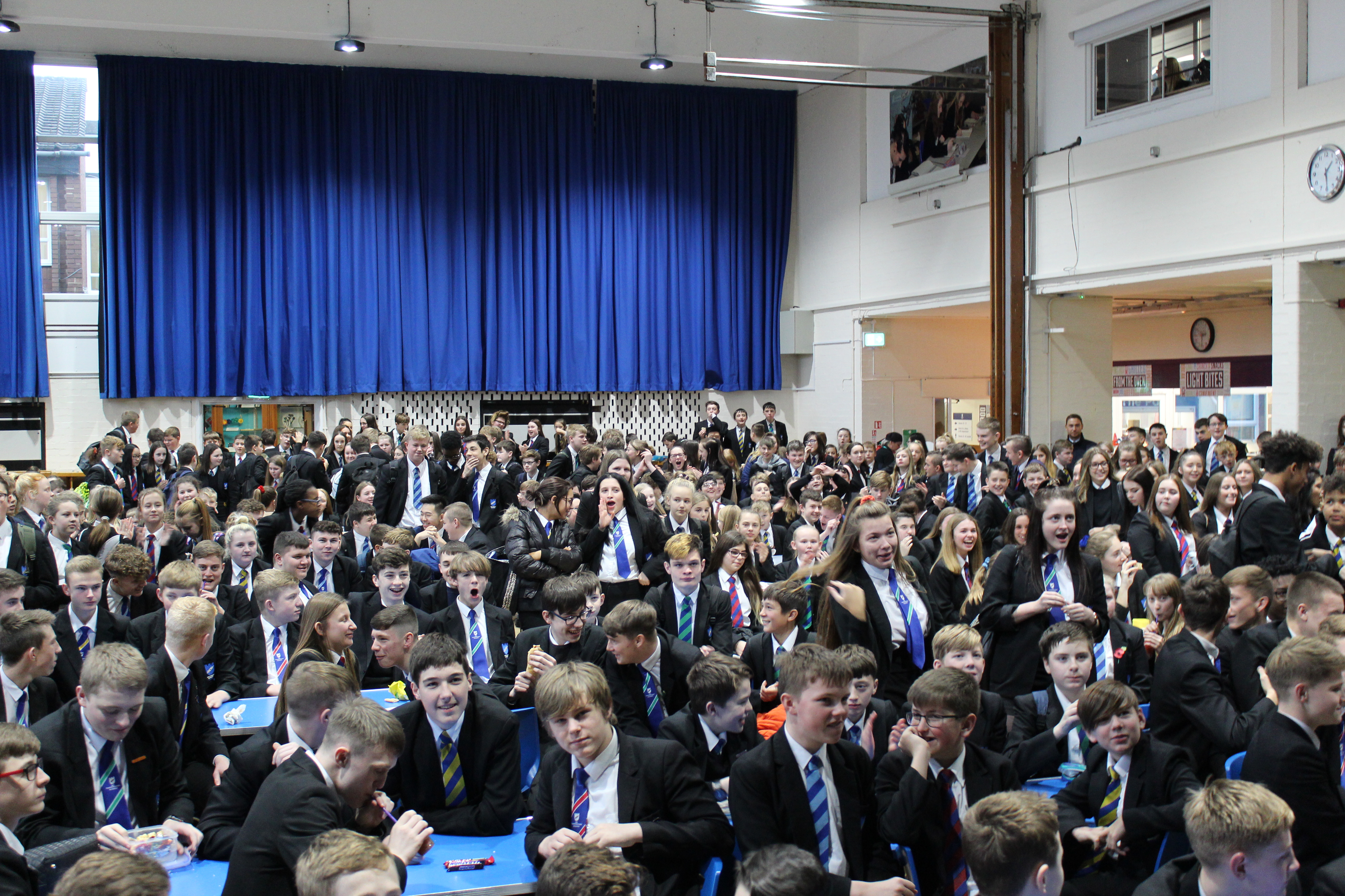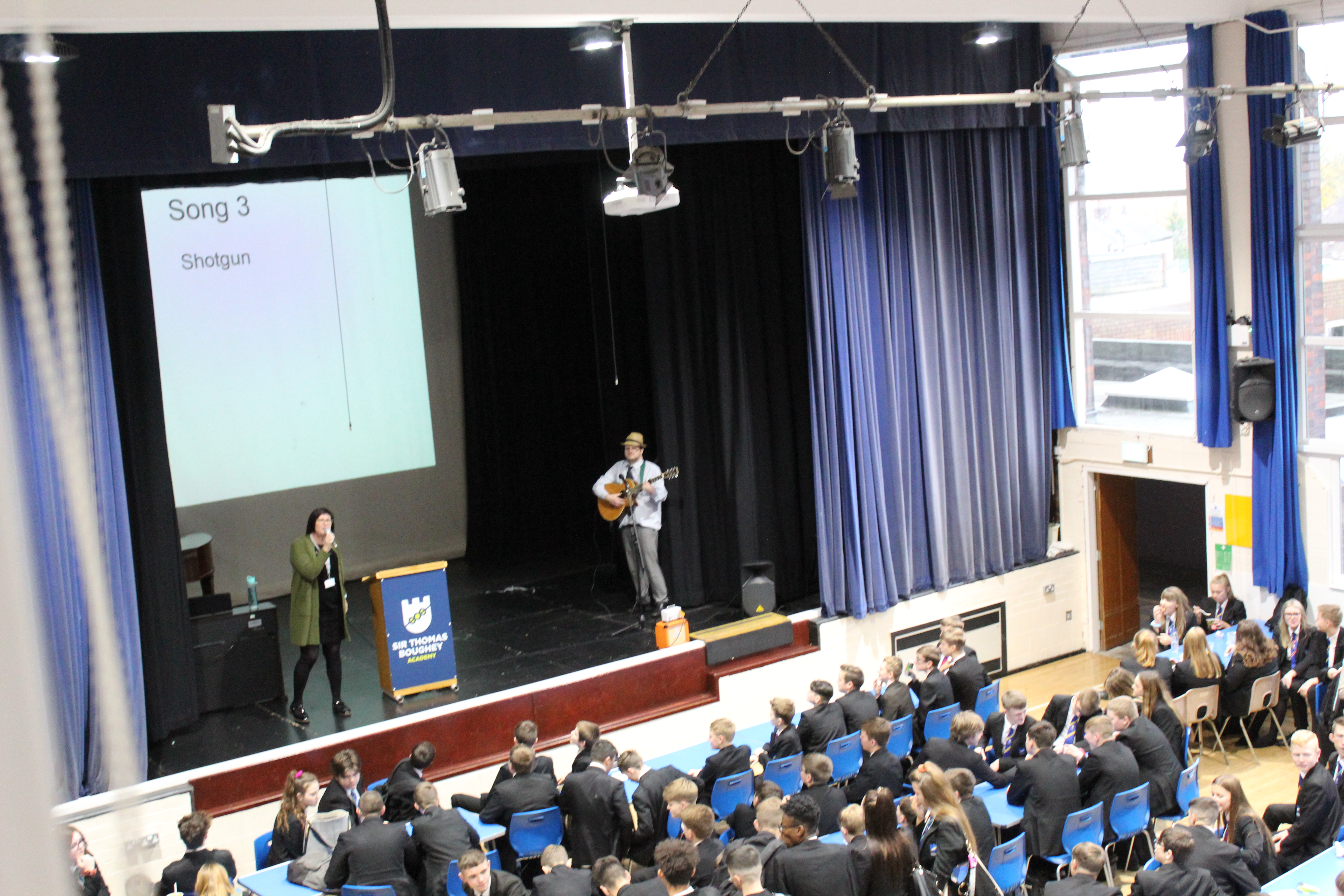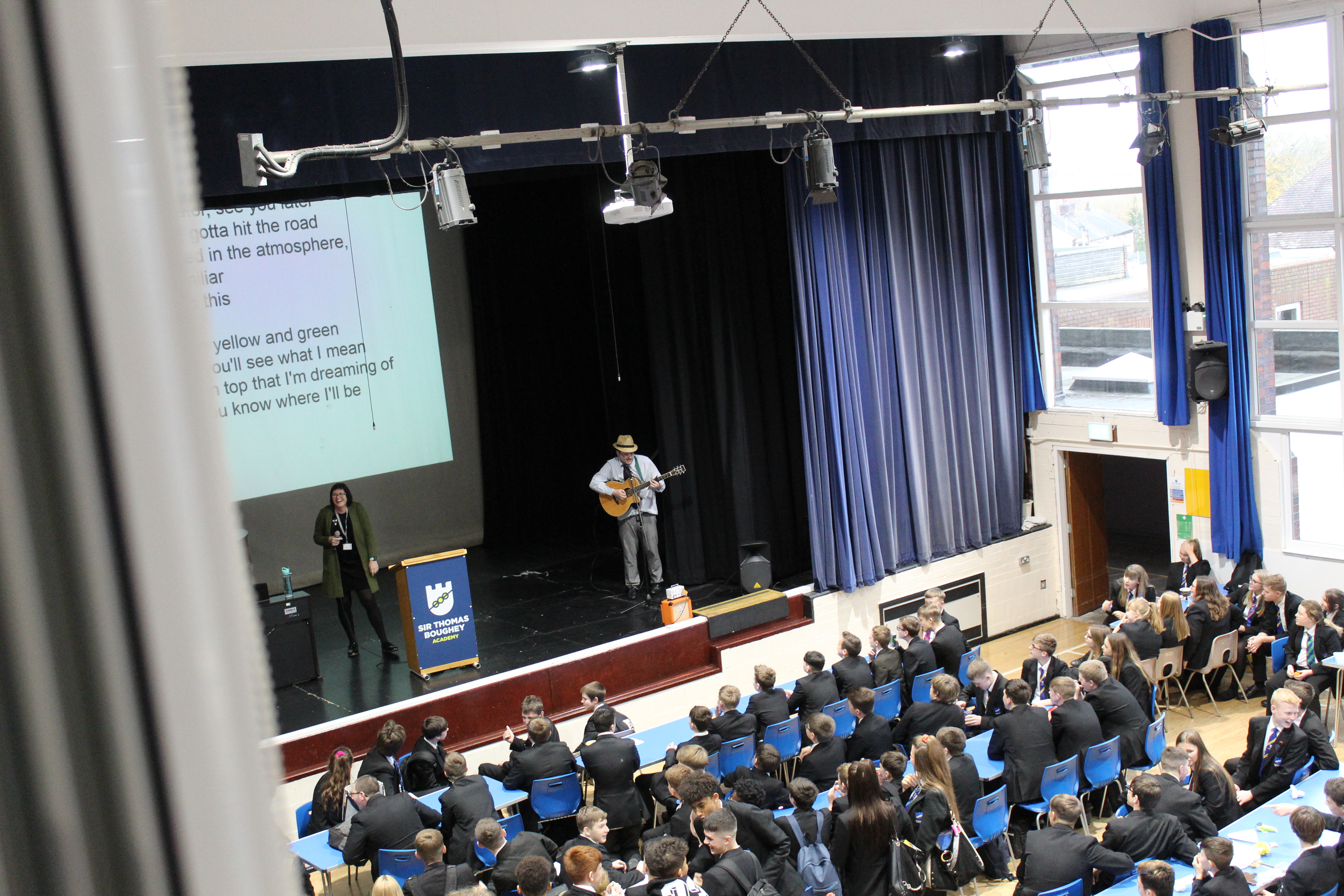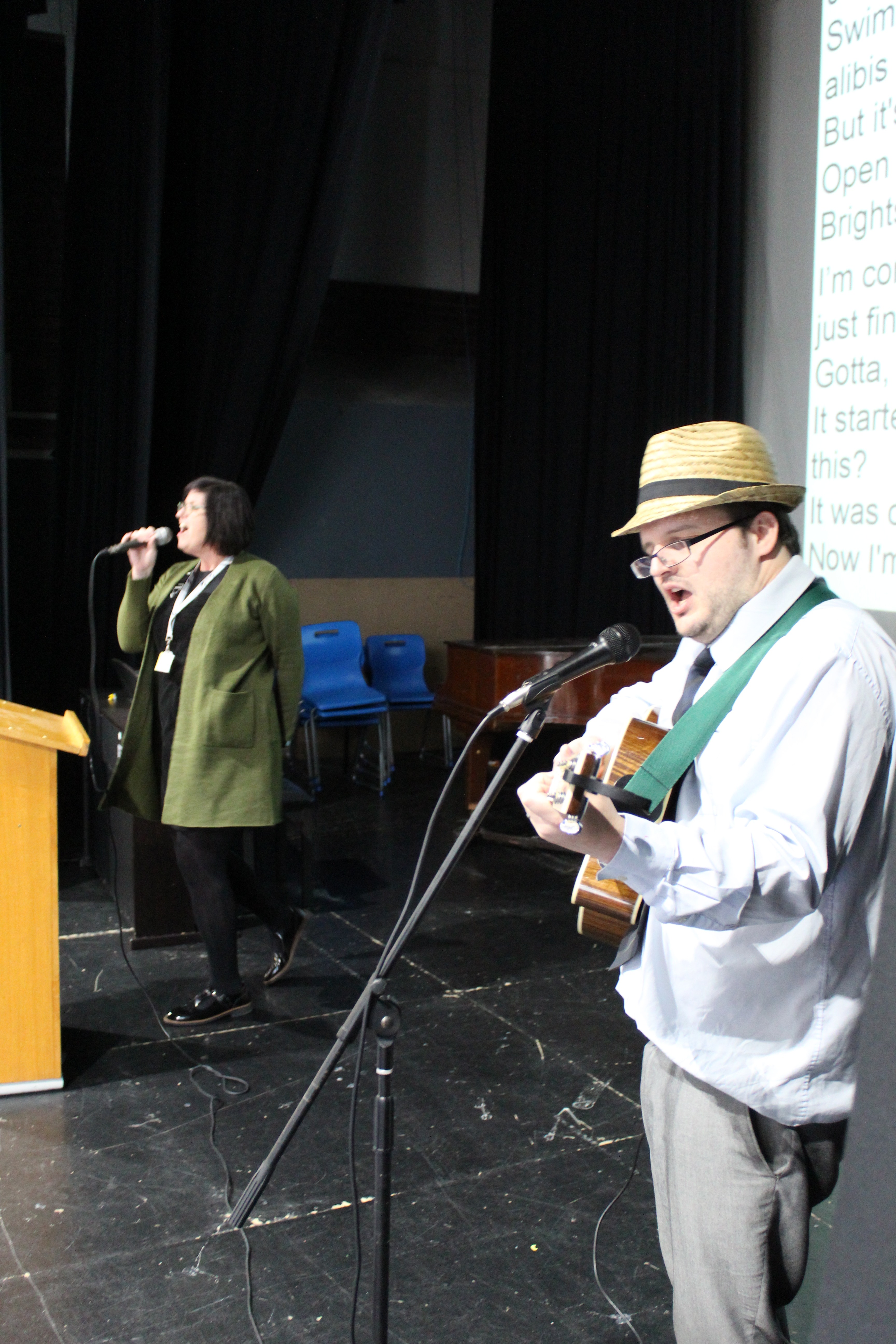 At lunch time Mr Mason and Mrs Goodwin took the stage to perform in front of the students for “Music While You Munch”. This was a great success and all in order to raise some money for Children in Need! The pupils loved every second of it!