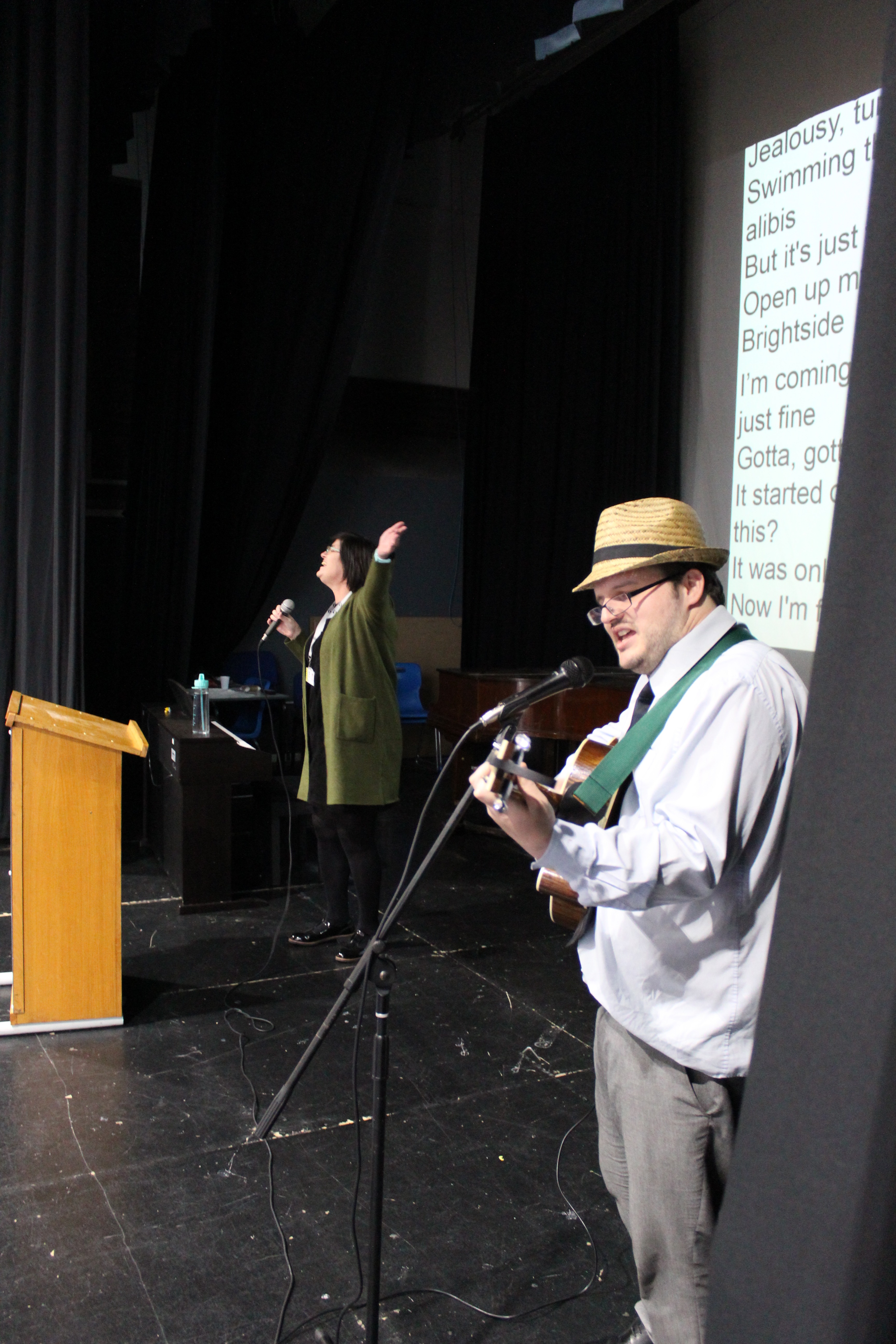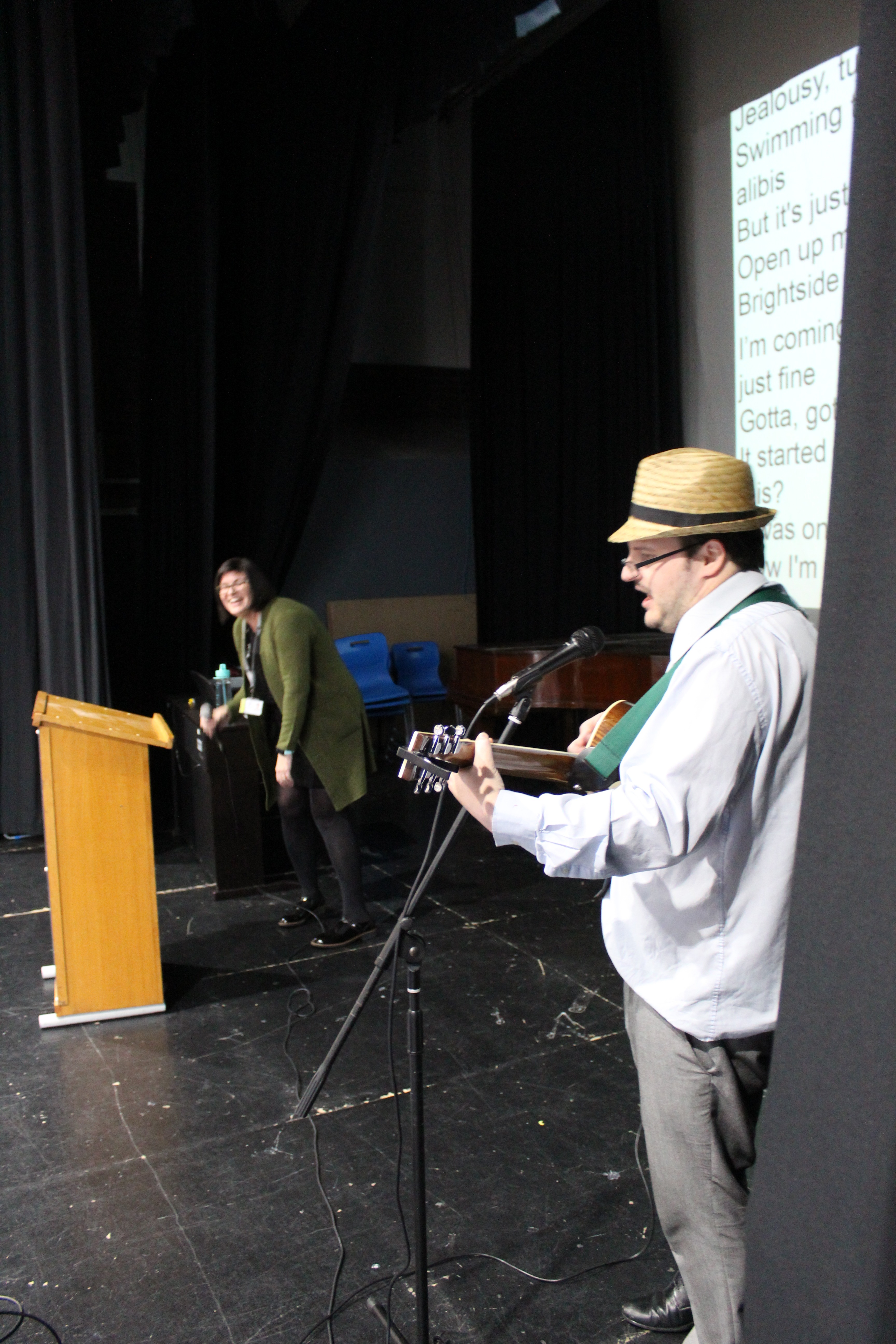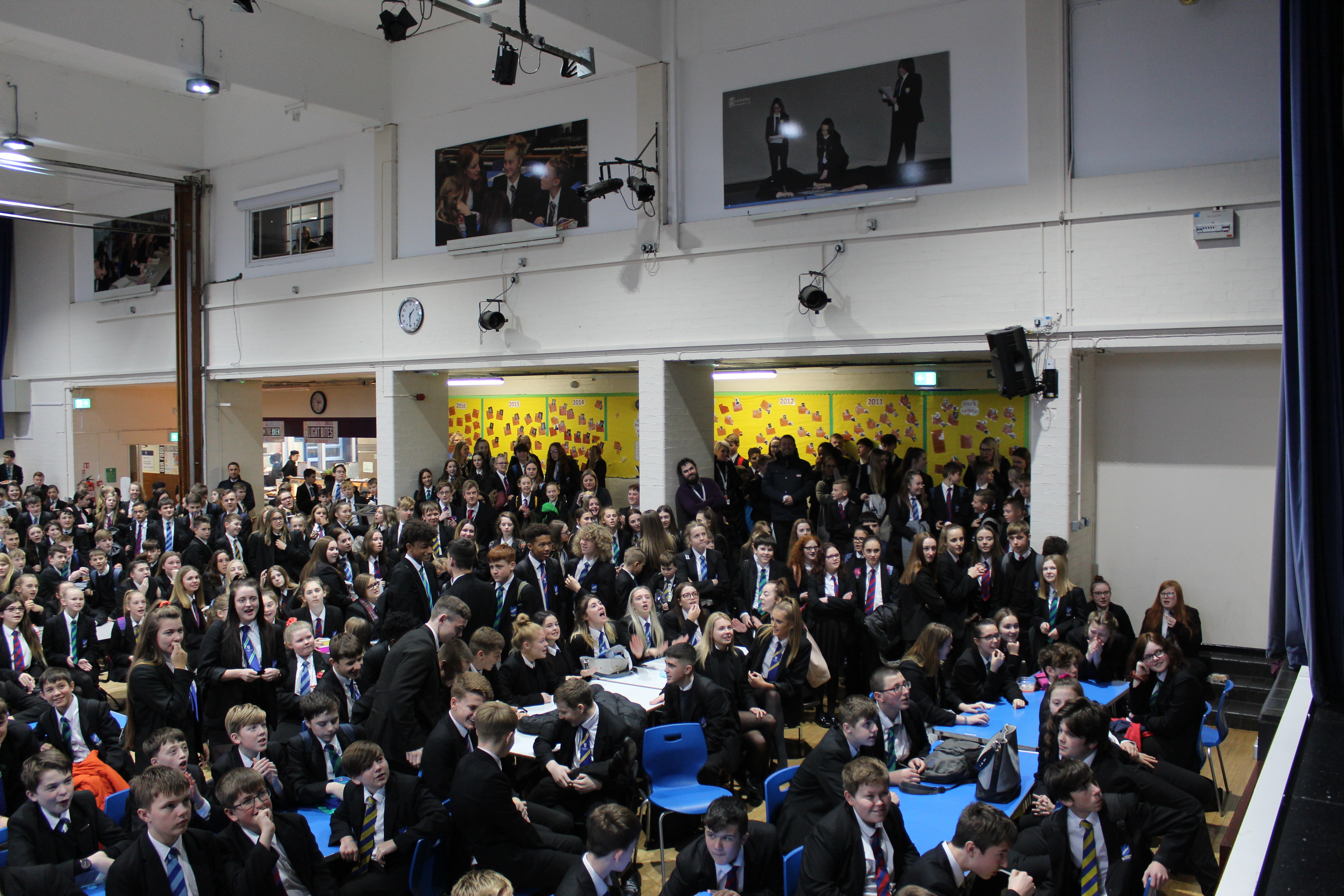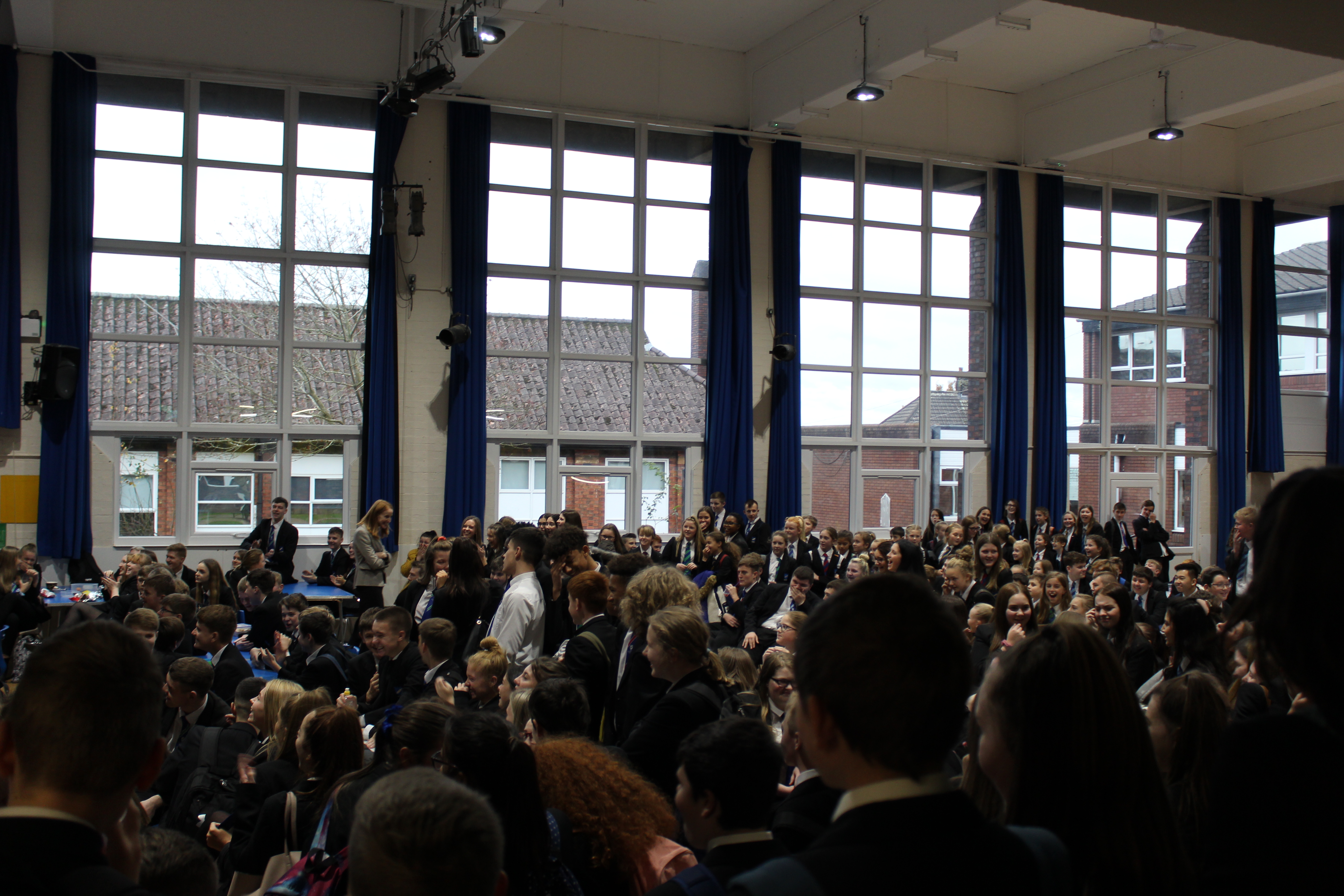 At lunch time Mr Mason and Mrs Goodwin took the stage to perform in front of the students for “Music While You Munch”. This was a great success and all in order to raise some money for Children in Need! The pupils loved every second of it!