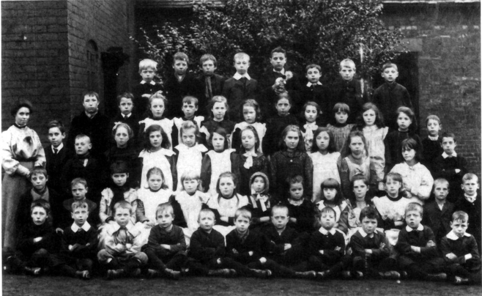 The picture below shows Mrs Sumnal with her class at the school. The picture was taken about 1905. The location is thought to be at the corner of the original building and the caretaker’s house (both now demolished).
