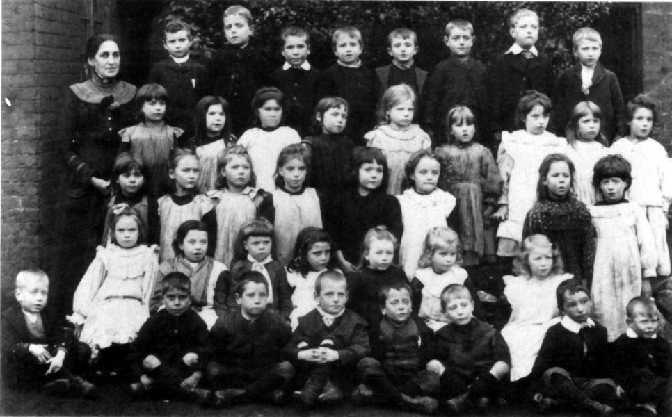 The picture to the right shows some of the pupils with their teacher Mrs Hewitt about 1905.