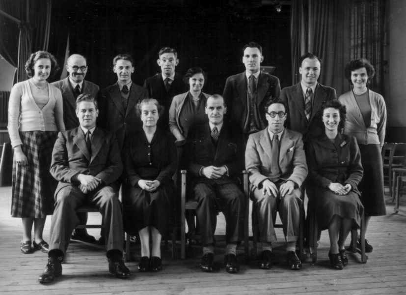 This picture shows the school staff in 1952. The picture was taken in the 1930s school hall. The room had a sprung floor for dances and was well equipped for the time. After the current hall was built in the 1960s it was converted into two classrooms and a number of small rooms.