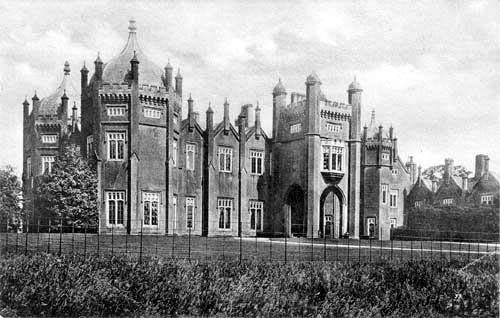 Sir Thomas Boughey was the local landowner of the site now occupied by the school. An extract of his family tree is available here. He lived at Aqualate Hall (shown left) at Forton, Staffordshire. The Boughey family had been connected with the Newcastle and Audley area for at least the last two hundred years. The local trade directory describes the area in 1851 a few years before the school was opened.
