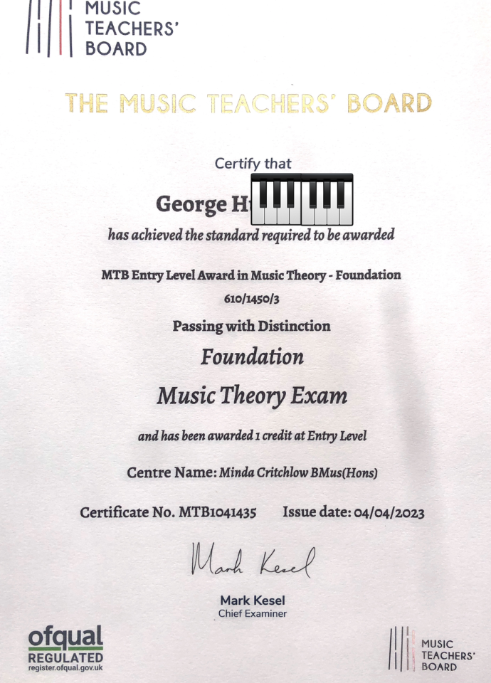 - George – Foundation Music Theory – Distinction