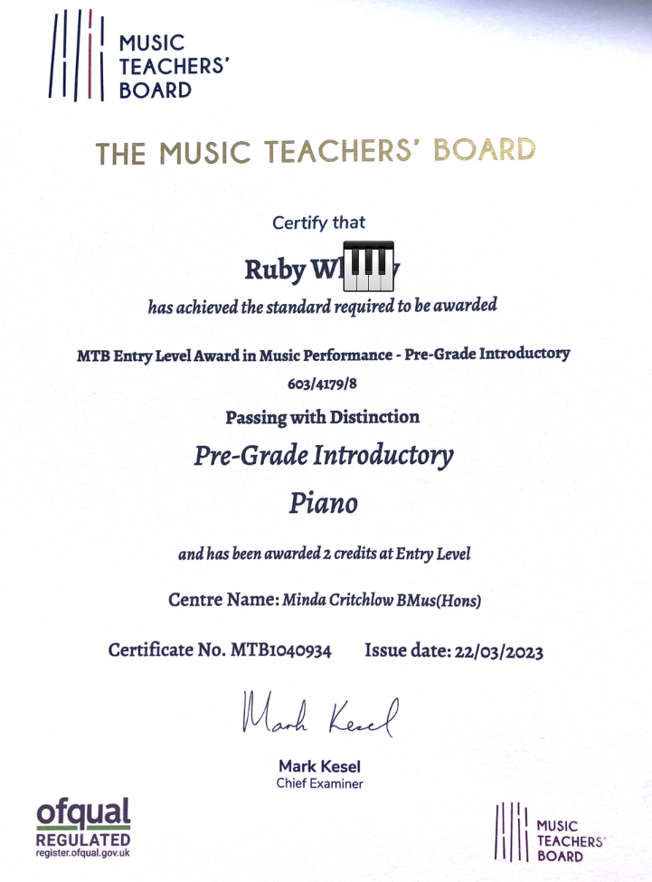 - Ruby – Pre-Grade Piano – Distinction